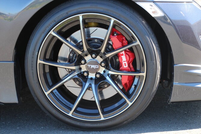 The wheels are finished with a machined face, and Paul has gone for the flat center-cap option (re-stickered with TRD logo).