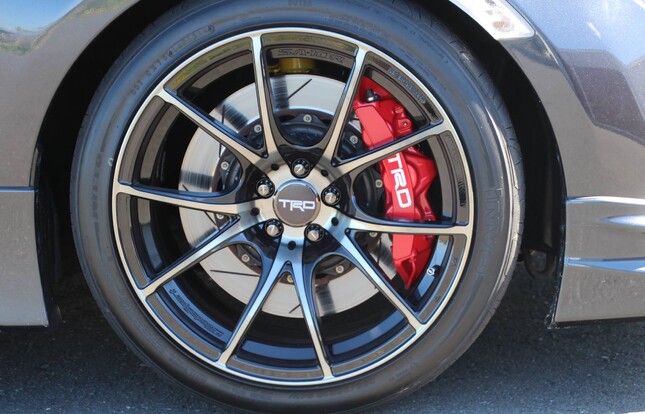 The wheels are finished with a machined face, and Paul has gone for the flat center-cap option (re-stickered with TRD logo).