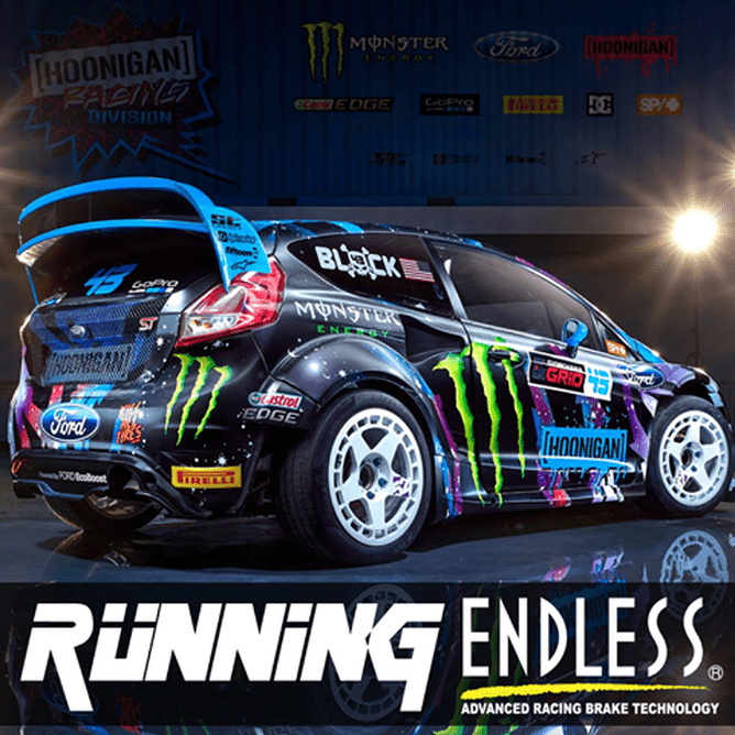 Driving the Hoonigan Racing Ford "Hybrid Function Hoon Vehicle" originally built by famous rally manufacturer M-Sport, these rally-spec vehicles use ENDLESS RF650 brake fluid as their product of choice, from factory.